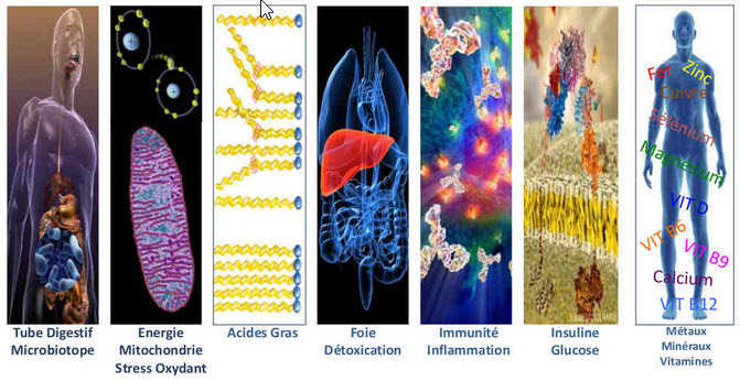 (*) Les bilans biologiques approfondis sont des outils essentiels en thérapie nutritionnelle et fonctionnelle. Loin des analyses de routine, ils permettent d'obtenir une vision précise de votre état de santé interne et de mettre en lumière des déséquilibres qui ne sont pas toujours détectés par des bilans classiques.